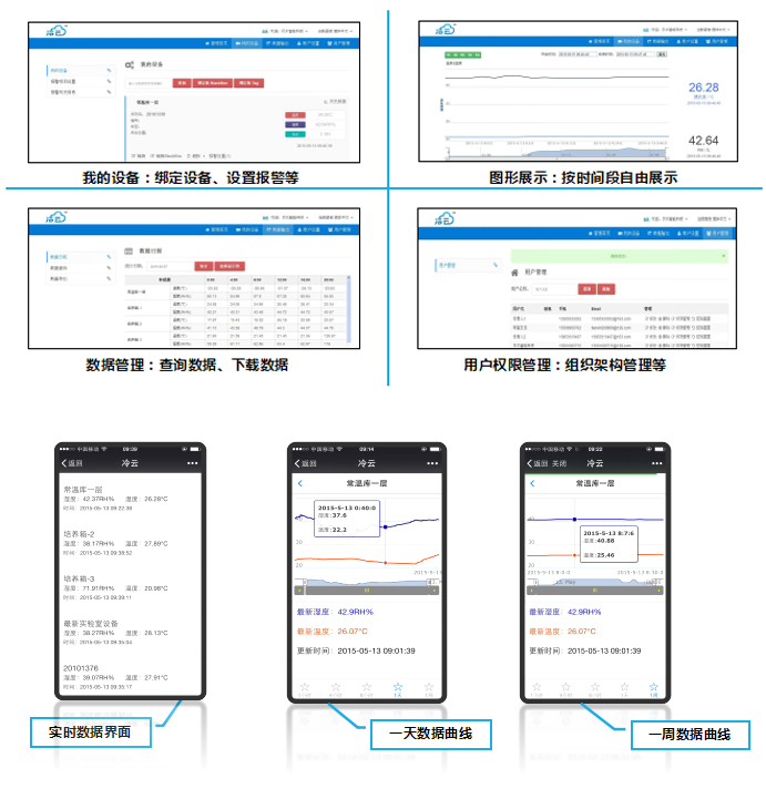 用戶登錄www.coldclouds.com云端服務器,就可以實現設備監控,報警設置,數據處理,權限設置等功能。